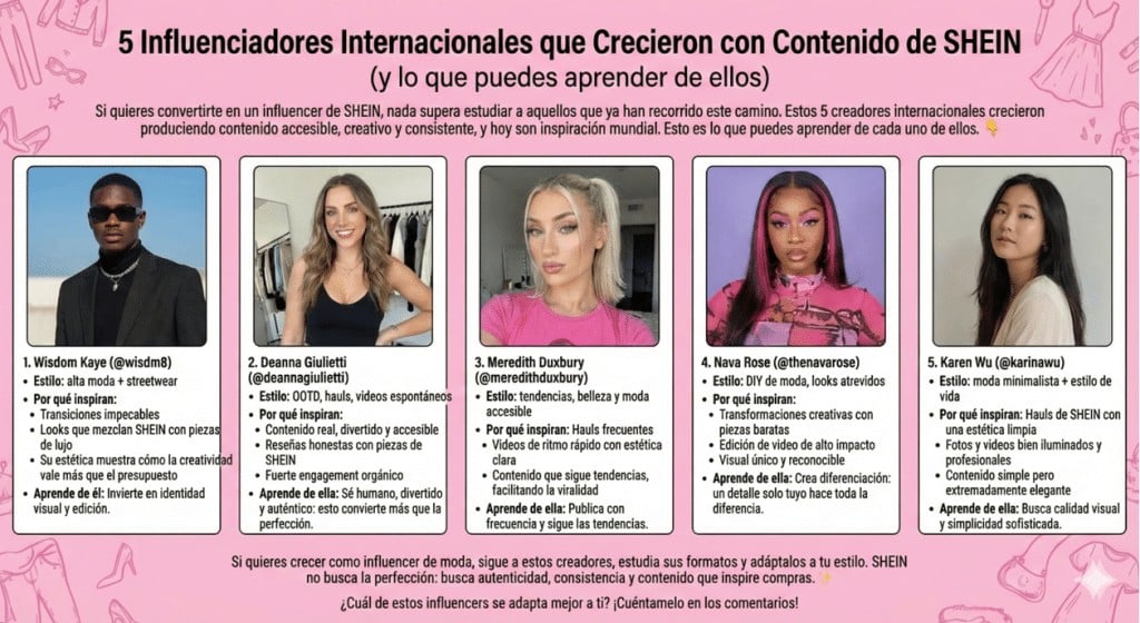 ✨ 5 Influencers Internacionales que Crecieron Gracias a Contenidos de SHEIN (y lo que Puedes Aprender de Ellas)
